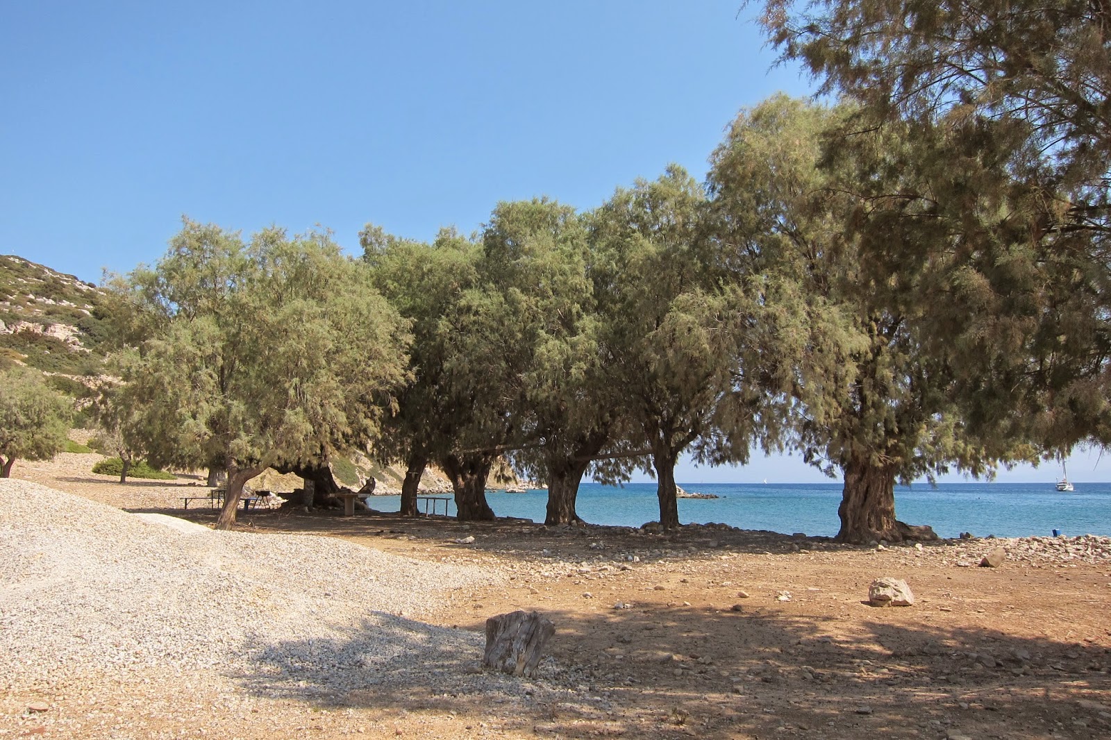 Its just what you might expect to see in Greece. Beautiful water, goats, olive and tamarisk trees,